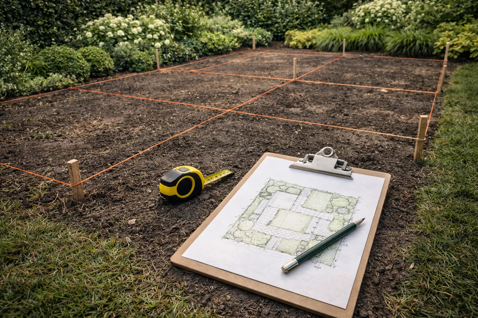 De grootste verspilling ontstaat als je later ontdekt dat de route onhandig is (naar schuur/achterom) of dat je zitplek niet werkt. Teken daarom eerst: