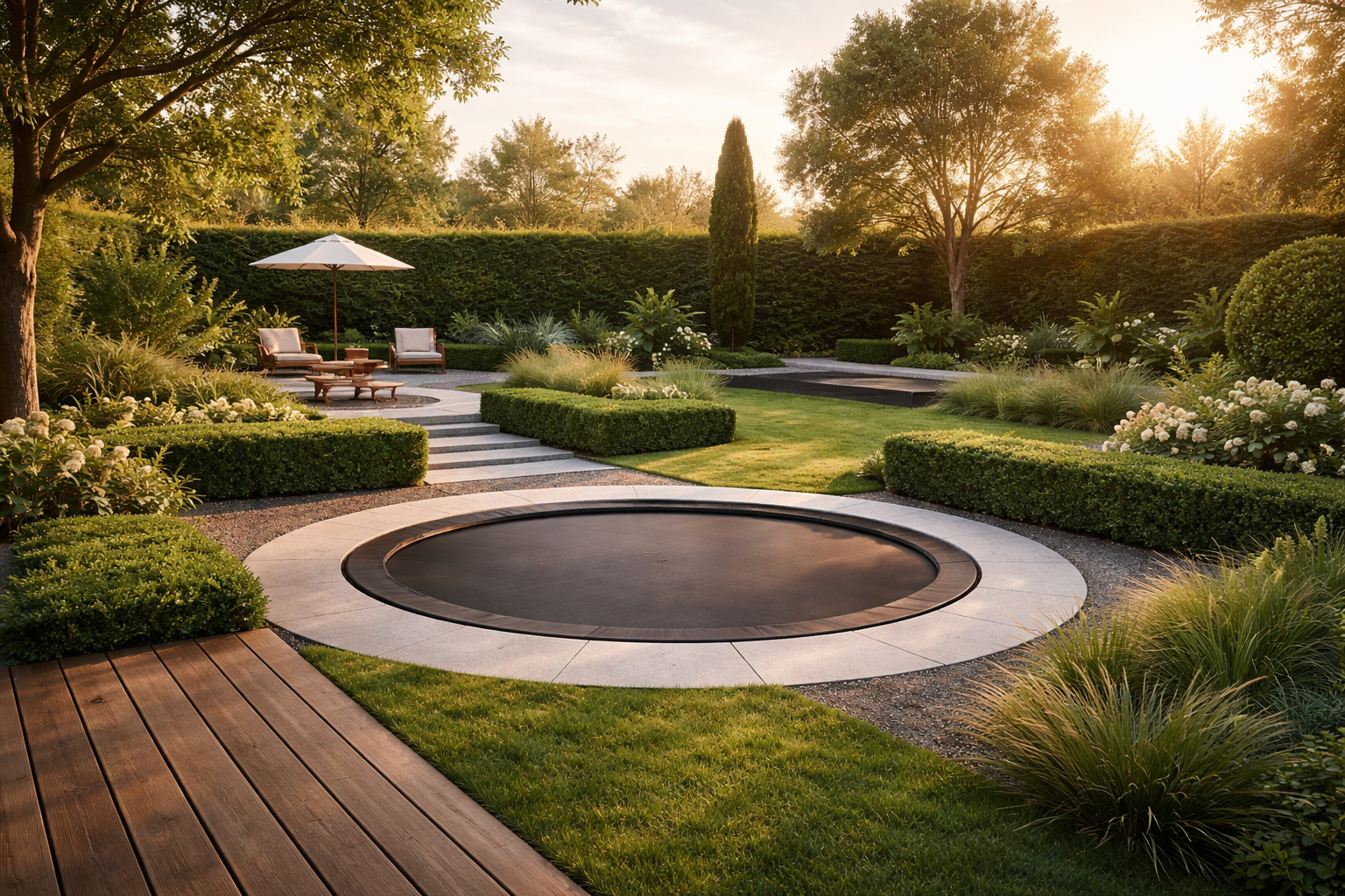 Een trampoline in tuin kun je visueel rustiger maken door hem te plaatsen en te “kaderen” alsof hij onderdeel is van het tuinontwerp. Dat betekent: niet ergens neerzetten waar nog een gat is, maar kiezen voor een plek die logisch is in de flow van je tuin.