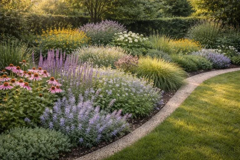 - Houd het kleurenpalet rustig: kies in de rest van de tuin voor neutrale materialen, zodat het geheel als één ontwerp voelt.