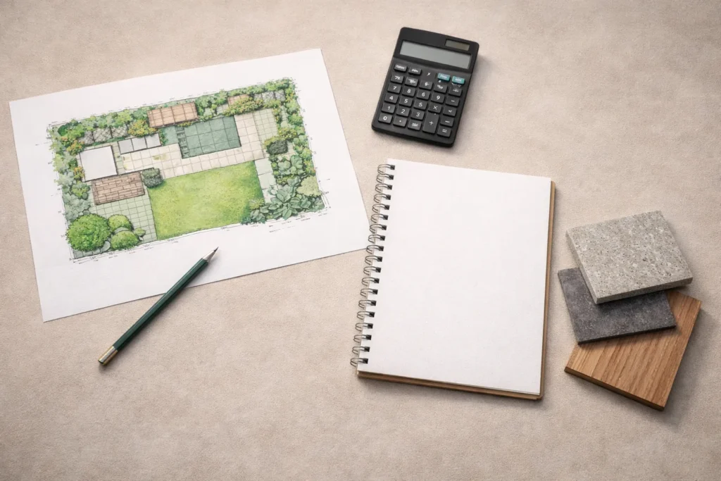 Begin met zon, wind en looproutes: waar komt de natte zone, waar wil je zitten, en waar berg je spullen op? Maak daarna een plan voor ondergrond en afwatering, en kies pas dan afwerking en accessoires. Een heldere zonering (droog/nat/opslag) voorkomt rommel en maakt het gebruik fijner.